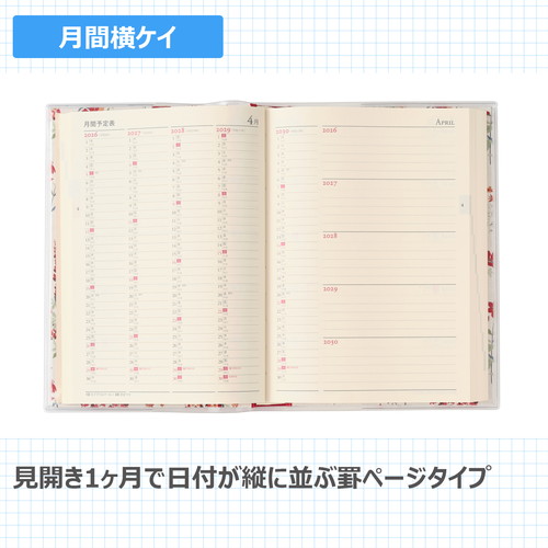 花柄で人気のイギリスのブランドLAURA ASHLEYのダイアリーシリーズ 【月間ページ】見開き1ヵ月で日付が縦に並ぶ罫ページタイプ。長期の予定を書くのに便利です。 【日記欄】5年分の同じ日の記録を一覧できる5年連用タイプ。日記や育児日記などにおすすめのレイアウトです。 思い出の写真など入れておくのに便利なポケットアルバムが付いています。 ※表紙を変更しました