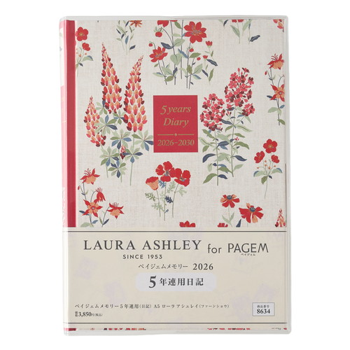 #日本能率協会 ペイジェム 日記 2026年 A5 メモリー 5年連用 ローラアシュレイ ファーンショウ 8634 (2026年 1月始まり)