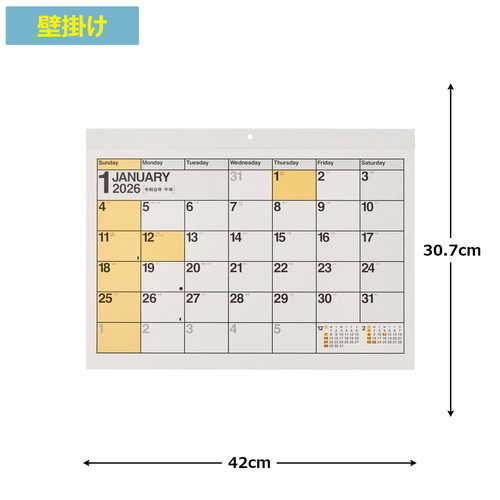 #日本能率協会 NOLTY 2026年 カレンダー 壁掛け A4 C136