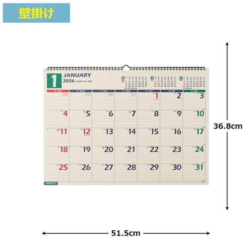 #日本能率協会 NOLTY 2026年 カレンダー 壁掛け UD B3 C166