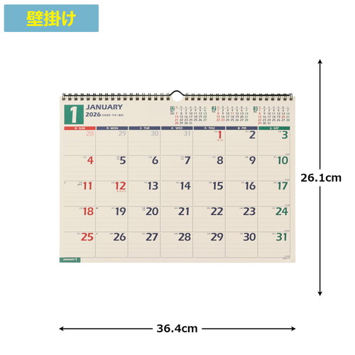 #日本能率協会 NOLTY 2026年 カレンダー 壁掛け A4変型 C145