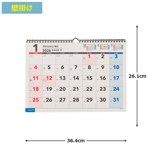 #日本能率協会 NOLTY 2026年 カレンダー 壁掛け A4変型 C145