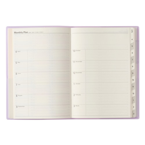 大切な計画や記録を預けて思考を整理。 【計画しやすい】巻頭のプランページを活用すると、実現したい未来の目標を可視化したり、進捗状況をチェックしたりすることができます。 【記録しやすい】月と月の間には罫と方眼のメモページ。月ごとの出来事やアイデアを記録することで、思考を整理できます。 【保管しやすい】表紙の内側に収納に便利なポケットが4つ。大切なメモや写真、カードなどをさっと預けて保管できます。
