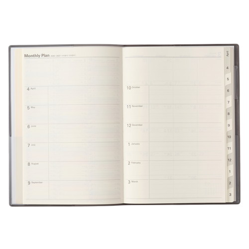 大切な計画や記録を預けて思考を整理。 【計画しやすい】巻頭のプランページを活用すると、実現したい未来の目標を可視化したり、進捗状況をチェックしたりすることができます。 【記録しやすい】月と月の間には罫と方眼のメモページ。月ごとの出来事やアイデアを記録することで、思考を整理できます。 【保管しやすい】表紙の内側に収納に便利なポケットが4つ。大切なメモや写真、カードなどをさっと預けて保管できます。