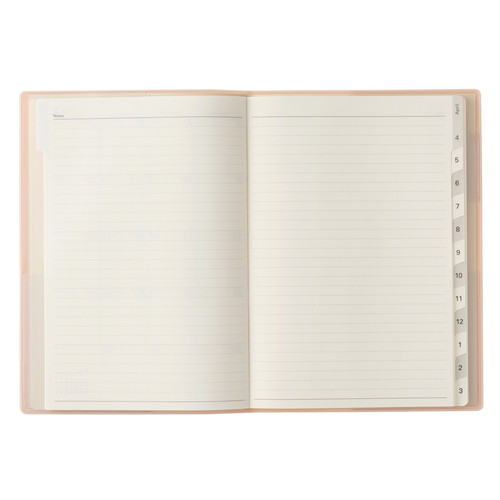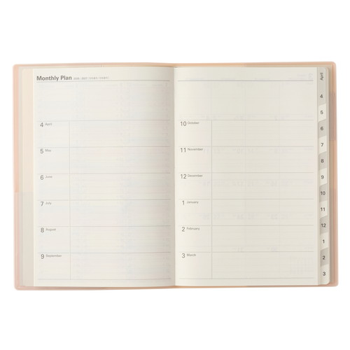 大切な計画や記録を預けて思考を整理。 【計画しやすい】巻頭のプランページを活用すると、実現したい未来の目標を可視化したり、進捗状況をチェックしたりすることができます。 【記録しやすい】月と月の間には罫と方眼のメモページ。月ごとの出来事やアイデアを記録することで、思考を整理できます。 【保管しやすい】表紙の内側に収納に便利なポケットが4つ。大切なメモや写真、カードなどをさっと預けて保管できます。
