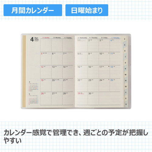 #日本能率協会(国内販売のみ) ペイジェム 手帳 2026年 4月始まり マンスリー プチ アイダにメモ 日曜始まり ホワイト 9817