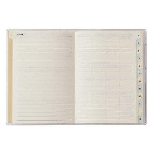 PAGEM(ペイジェム)のマンスリー手帳シリーズは、1ヶ月の予定をパッと見渡すことができ、軽くて持ち運びの際にもかさばらないのが特徴です。【月間ページ】見開き1ヶ月のベーシックなブロックタイプ(日曜始まり)。カレンダーと同じような感覚で見ることができ、月ごとの予定が把握しやすいのが特徴です。当月の月間ページと翌月の月間ページの間にメモページがあります。