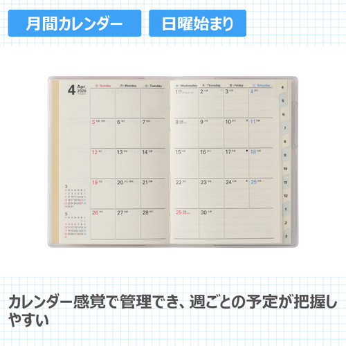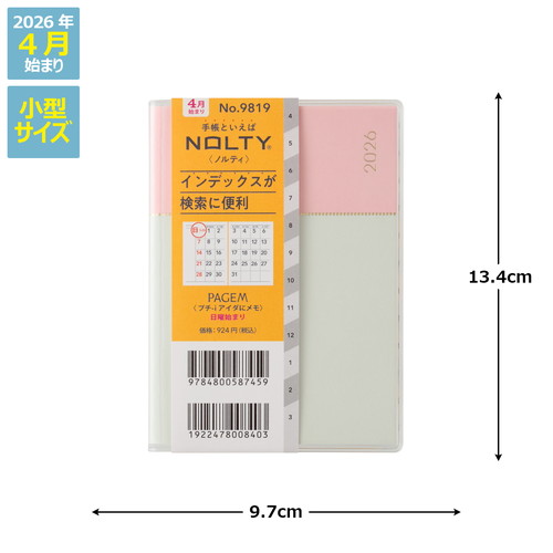 #日本能率協会(国内販売のみ) ペイジェム 手帳 2026年 4月始まり マンスリー プチ アイダにメモ 日曜始まり ピーチミント 9819