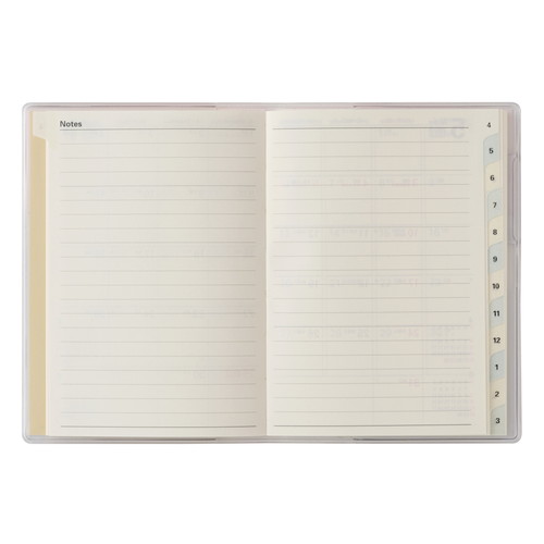 PAGEM(ペイジェム)のマンスリー手帳シリーズは、1ヶ月の予定をパッと見渡すことができ、軽くて持ち運びの際にもかさばらないのが特徴です。【月間ページ】見開き1ヶ月のベーシックなブロックタイプ(日曜始まり)。カレンダーと同じような感覚で見ることができ、月ごとの予定が把握しやすいのが特徴です。当月の月間ページと翌月の月間ページの間にメモページがあります。