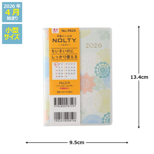 #日本能率協会(国内販売のみ) ペイジェム 手帳 2026年 4月始まり マンスリー リュミエール プチ 日曜始まり ミント 9824