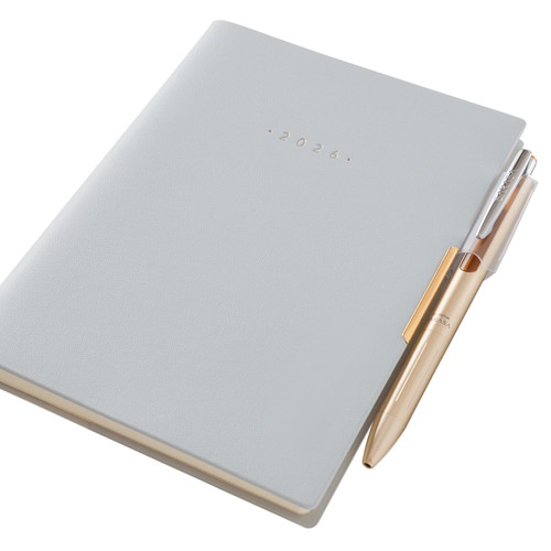 もっと計画して、もっと記録できる!プランとログページが充実の「エクリPlusB6」エクリB6シリーズの機能はそのままに巻末ページを16ページ追加しました。巻末には1年を大切に過ごせるような様々な記録フォーマットを用意しました。表紙はシンプルながらも上品な色合い、あしらいで華やかさをプラスしました。