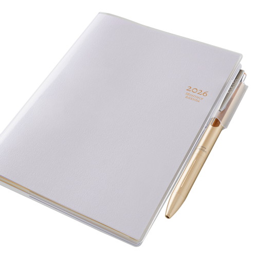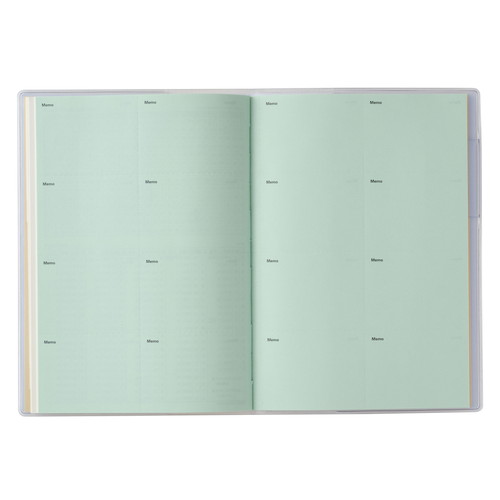バリエーション豊かな薄型マンスリー。新色も続々登場しています!【月間ページ】見開き1ヶ月のベーシックなブロックタイプ(月曜始まり)。カレンダー感覚で月ごとの予定が把握しやすいのが特徴で、見たいページをパッと開けるインデックス付きです。