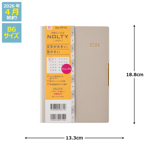 #日本能率協会(国内販売のみ) ペイジェム 手帳 2026年 4月始まり B6 マンスリー グラース 日曜始まり ベージュ 9916