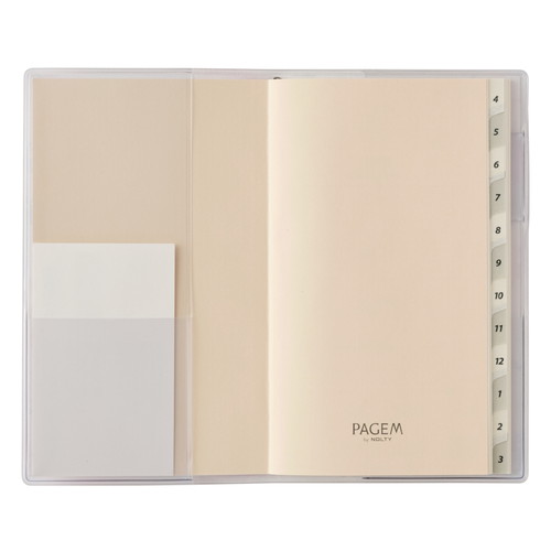 PAGEM(ペイジェム)のマンスリー手帳シリーズは、1ヶ月の予定をパッと見渡すことができ、軽くて持ち運びの際にもかさばらないのが特徴です。【月間ページ】見開き1ヶ月のベーシックなブロックタイプ(日曜始まり)。カレンダー感覚で月ごとの予定が把握しやすいのが特徴で、見たいページをパッと開けるインデックス付きです。