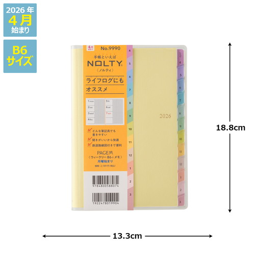 #日本能率協会(国内販売のみ) ペイジェム 手帳 2026年 4月始まり B6 ウィークリー メモ 月曜始まり イエロー 9990
