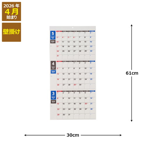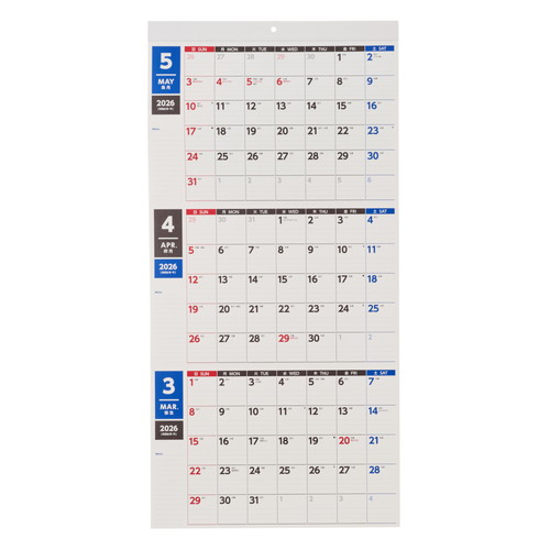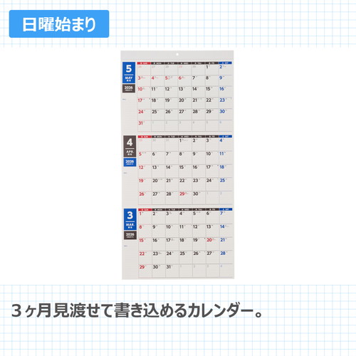 3ヶ月見渡せて書き込めるカレンダーミシン目が入っているので、切り取って使うことができます。先の予定を見通したい方におすすめ。シンプルデザインですっきり見やすいのも特徴です。