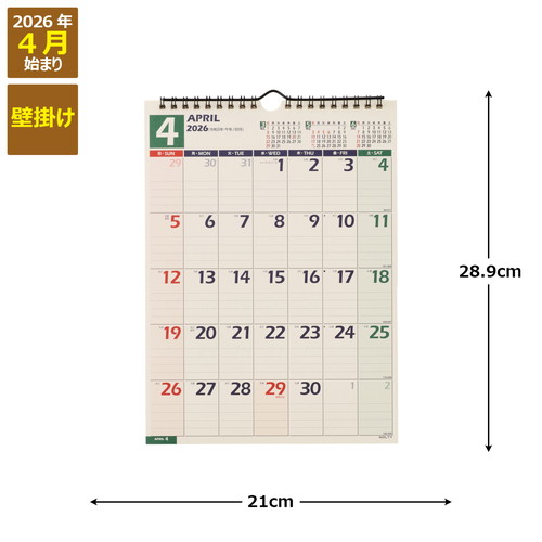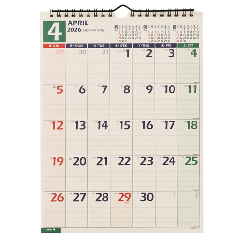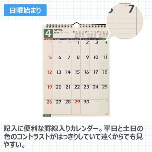 記入に便利な罫線入りA4変型サイズカレンダー。書き込みやすいNOLTYオリジナル用紙を使用人気デザイン!手狭な場所でも使えます。便利な年間カレンダー付き(2年分)
