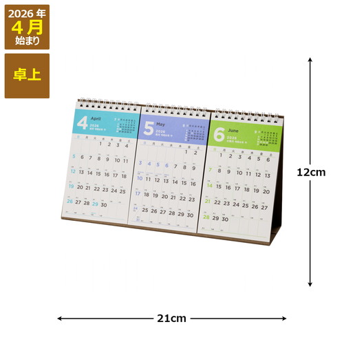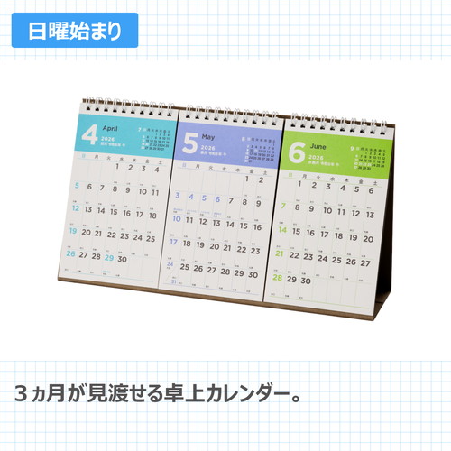 3ヵ月をパッと見られるカラフルカレンダー3ヵ月がコンパクトに見られるカレンダー。先々の予定を見たいという方におすすめです。