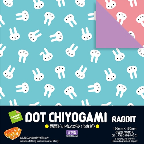 両面に色がついているので、裏面の出る作品にピッタリです。6色調36枚入りで、たくさん楽しめます。厚めの紙を使用。 デザインはうさぎ。【検索ハッシュタグ】#おりがみ#折り紙#ショウワノート#両面#ドット#うさぎ