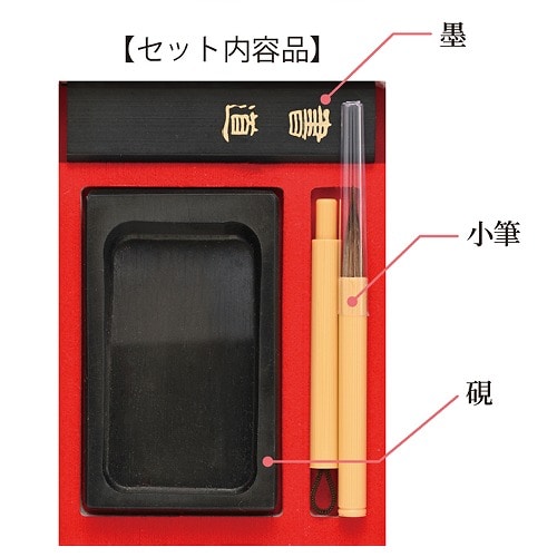 小さくてかわいい紙箱に小筆、墨、硯 をセットしました。贈り物やお土産におすすめの商品です。さらっと一筆したためる…友人への手紙や熨斗書きなどにお使い頂けます