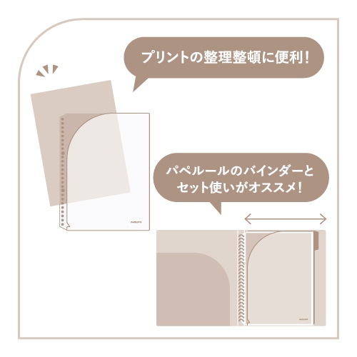 プリント学習が多い学生に便利な、プリント類の保管がしやすいポケット。パペルールバインダーとセット使いしやすい仕様&デザイン。3枚入り。