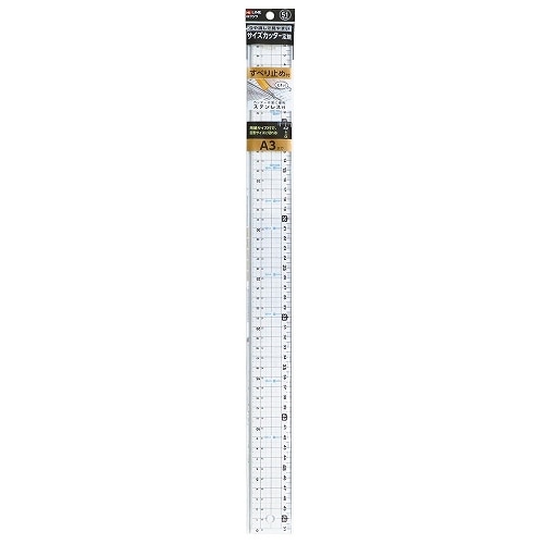 つや消し加工で反射が少なく見やすい定規です。カッター作業に便利なステンレスとすべり止め付。名刺、写真L版、郵便はがき、A6?A3、B6?B4サイズの目盛りが入っており、該当サイズに切りたい時などに便利です。高さや深さを測りやすい端(はし)目盛り【検索ハッシュタグ】#定規#直定規#方眼#学用品#物差し#カッター定規#工作#クツワ