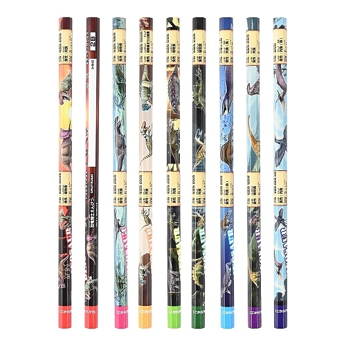 人気の恐竜16体の生態が学べる(分類、体長、食性)六角軸、2B黒芯のダース鉛筆です12本入、名前欄付【検索ハッシュタグ】#鉛筆#六角軸#2B#恐竜#図鑑#学用品#新入学#ギフト#クツワ