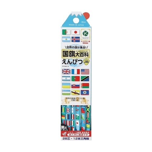 世界の国旗と国名が学べる鉛筆2B黒芯のダース鉛筆です自然と指のポジションが決まりやすい三角軸12本入、名前欄付本体軸とパッケージに富士山のイラストを掲載国旗イラスト表付録付【検索ハッシュタグ】#鉛筆#三角軸#2B#国旗#図鑑#学用品#新入学#ギフト#クツワ