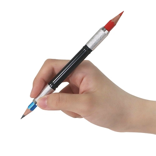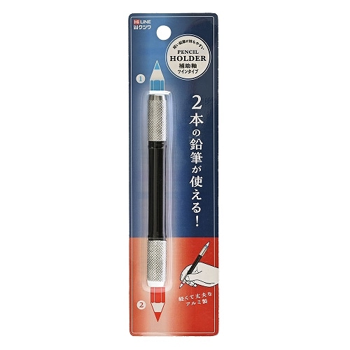2本の鉛筆を装着できる補助軸です。すべり止め加工グリップ。光沢感のあるアルミ製【検索ハッシュタグ】#補助軸#筆記補助#筆記小物#鉛筆ホルダー#学用品#サステナブル#クツワ