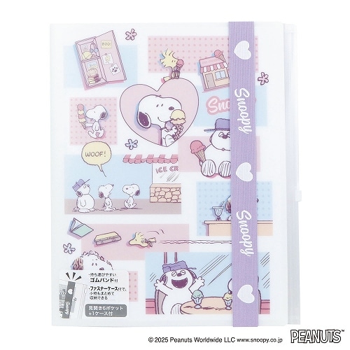 スヌーピーのきょうだいたちが学校帰りにアイスクリームを食べているシーンをイメージした文具シリーズ。わいわいがやがや楽しい雰囲気を表現したデザインです。【検索ハッシュタグ】#ペンケース#スヌーピー#クリアホルダー#クリアファイル#学用品#学童文具#クツワ