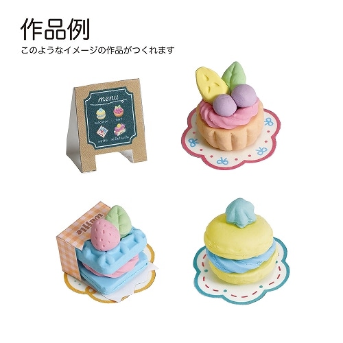 レンジで簡単にケーキのけしごむが作れるキットです。リアルできれいな形に作れる立体型付。ストロベリー&バニラ&ソーダの香り付。かわいく飾れるペーパークラフトが付いています。