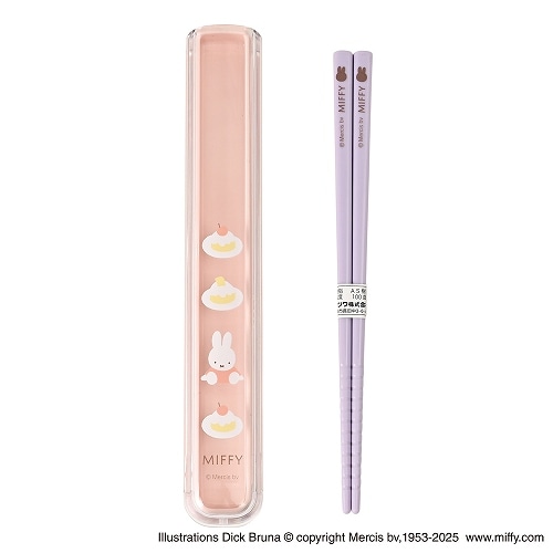 「ミッフィーとスイーツ」デザインの箸・ケースセット。スライド式のケースで開けやすい。