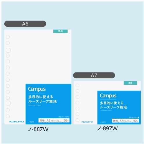 ・隙間時間にサッと勉強できる便利なキャンパスミニルーズリーフシリーズ・罫線がないので図解やイラストに使いやすく、自分に合った使い方ができる無地のルーズリーフです