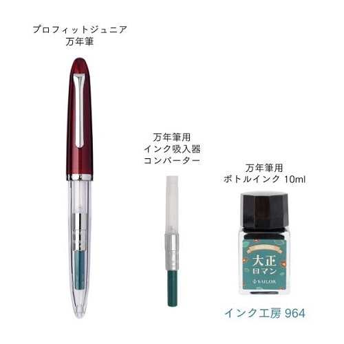 初心者でもこれ 1 つですぐに使い始めることができる 万年筆 / コンバーター / 10mlボトルインクのセット。レトロをテーマに時代をモチーフにしたオリジナルデザイン。「レトロ」をテーマに、日本の「大正」「昭和」「平成」それぞれの時代のモチーフに合わせたオリジナルデザイン。万年筆がクリアなので中のコンバーターが見え、インク・コンバーターとのカラフルな組み合わせが楽しめます。【検索ハッシュタグ】#万年筆#インク#セーラー#セーラー万年筆#インク沼#レトロ
