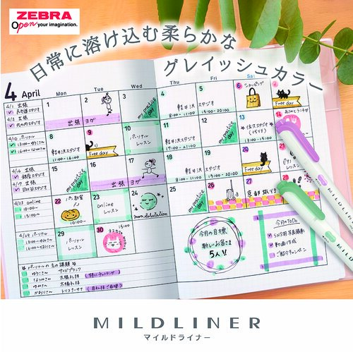 穏やかで優しい色合いが特長のラインマーカー。裏うつりしない水性顔料のインクと、他にはないおだやかな色合いが、マーキングだけでなくイラストなど幅広い用途で使用できます。35色に追加の心落ち着く新色グレイッシュカラー。【検索ハッシュタグ】#ゼブラ#マイルドライナー#マーカー