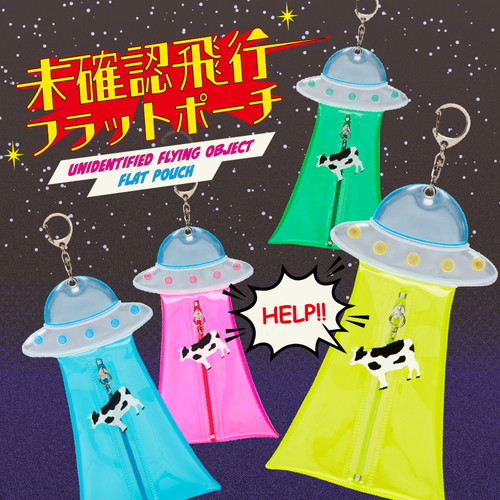 アクリルスタンドやミニフィギュアなど小物が収納できるフラットポーチ。UFO部分はリフレクター。キーホルダーパーツ付きなのでバッグなどに付けることができます。