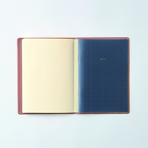 ノートや手帳と一緒に使用できるノート。正寸より小さいサイズに設計されているため、ノートカバーや手帳の袖ポケットに差し込みやすくなっています。レイアウトはコンポジションライン付きの5mm方眼です。