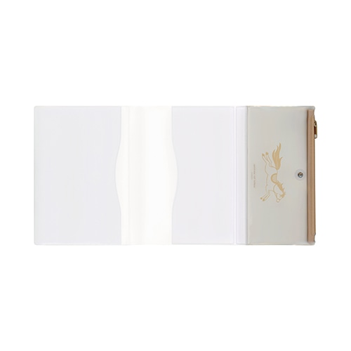 仕事をはかどらせるisshoni.シリーズに限定デザインが登場。2026年のダイアリーやノートと一緒に使いたい、午年デザインです。本体にメタリックのPVCを使用した特別感のあるアイテムに仕上がりました。クリアなPVC素材のカバーは中に入れた物が見えやすく、ペンケース部や前面ポケットにお気に入りの道具やポストカードなどを入れて自分らしくカスタマイズすることができます。ペンケースはスマホや75mmサイズの付箋も入る幅広サイズに設計、よく使う道具をひとまとめにできます。内面ポケットが2つあり、左側は大きいプリントなどをしっかり入れられる深さになっています。両袖にノートを差し込んでも使えます。手帳やノートだけでなく参考書や本を入れるのもおすすめです。