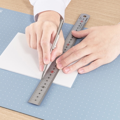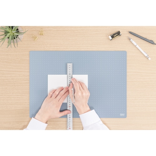 インテリアに馴染むミニマルデザイン。直角がわかりやすい格子罫線と、邪魔にならないドット罫線のいいとこどりの「十字罫線」仕様。 環境に配慮した「オレフィン系樹脂」を使用。持ち運びの際は半分に折りたたんでコンパクトに持ち運ぶことができます。場所やシーンを選ばない落ち着いたカラーの4色展開です。クリアは半透明素材のマットのためライトテーブルなどで透き通り、スクリーントーンや切り絵などのトレース作業に使用できます。【検索ハッシュタグ】#ナカバヤシ#折りたたみカッティングマット#工作マット#折り畳みマット#裁断用マット#カッター作業用#紙細工用マット#デスク用カッティング#クラフト作業用#製図マット#折りたたみデスクマット#A3サイズマット#42cm×29.7cm#カッター台#クラフト机用