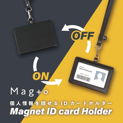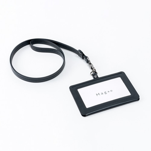 個人情報の「見せる/隠す」をワンタッチで切り替えられるIDカードホルダーです。社内やイベント会場ではカードを表示、人目が気になる移動中や休憩時はフラップを折り返すだけでカードを隠すことができます。本体と同じ色のネックストラップ付き。アジャスタークリップで長さの調節も可能です。カードの向きに合わせて選べる、ヨコ型とタテ型の2タイプをラインアップ。<ご使用上の注意>本製品にはマグネットが内蔵されています。ペースメーカーなどの体内植込型医療用電子機器を装着している方は使用しないでください。本磁気記録媒体(キャッシュカード・クレジットカード・磁気式社員証など)や精密機器(スマートフォン、パソコン、磁気式キーなど)に近づけないでください。データ消失・故障の原因となる場合があります。【検索ハッシュタグ】#ナカバヤシ#Nakabayashi#IDカードケース#横型タイプ#ジェットブラック#黒#PU素材#磁石付き#鉄パーツ#社員証入れ#名札ケース#カード収納#ビジネス用品#通勤用#シンプルデザイン#マグネット式#Mag+o#Magto#マグト#名札