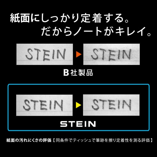 強さのテクノロジー、シュタイン構造。フレームが芯を内側から支えます。折れにくい!シュタインは芯の内部に強化シリカによるフレームを確立。このフレームが内側から芯全体を支える構造のため、驚きの強度を実現。