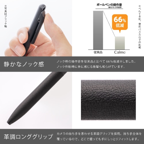 心地よく静かなノック感で使う人や環境に調和する、新しいなめらか油性ボールペン。カメラの持ち手にも使われる革調のロンググリップを採用しており、筆記時の安定感も抜群です。シンプルながら個性のあるシルエットは流行に左右されず、男女関係なく使う人になじみます。【検索ハッシュタグ】#油性#ボールペン#なめらか#限定#カルム#静音#オフィス#勉強#シンプル#ユニセックス#フィール#ぺんてる#pentel