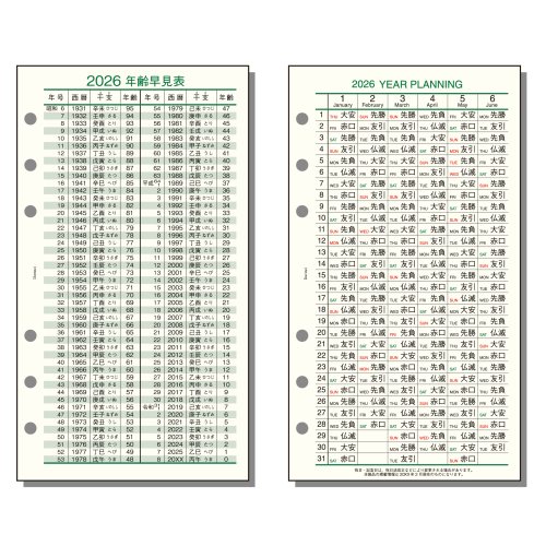 目にやさしいクリーム色が特長です ・六曜早見表(1枚):大安、仏滅などを一目で見ることができて便利です。 表:2026年1月~6月、裏:2026年7月~12月 ・年齢早見表(1枚):2007年~2026年までの平成・令和の年号がすぐ分かります。 表:2026年版年齢早見表、裏:西暦・年号早わかり表他 ・汚れ、破損を防ぐために1枚ずつ袋入【検索ハッシュタグ】#日付品#26日付#レイメイ藤井#リフィル#日付リフィル
