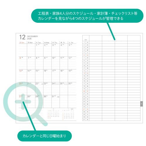 #レイメイ藤井 ダイアリー 26SNダイアリー ブロック日曜 12月はじまり RFDR2687