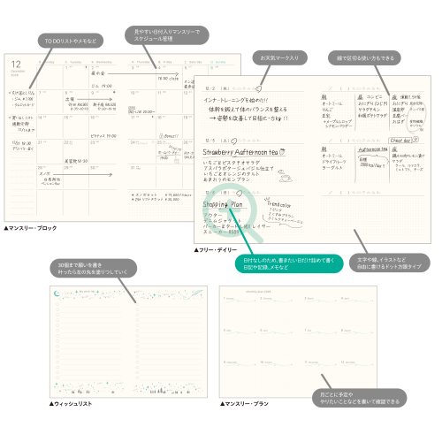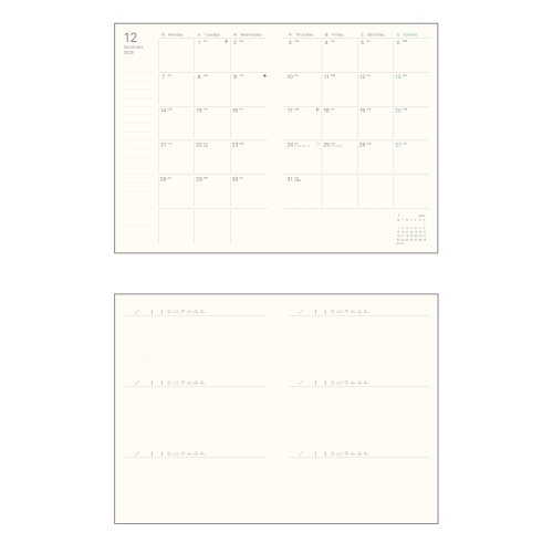 スケジュールと一緒に気軽に書いて心を整えるログダイアリーです。日付入りマンスリーと日付無しデイリーのハイブリットダイアリーなので、1ヶ月の予定は把握できるけど毎日の記録は書きたい日だけ書けるのが特徴です。目に優しいクリーム紙で持ち運びしやすいノートタイプです。【検索ハッシュタグ】#日付品#26日付#ダイアリー#レイメイ藤井