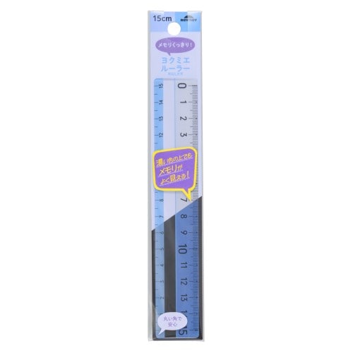 メモリの部分の色が変化する新感覚定規です。濃い色の上で長さを図りたい時に、大きい目盛側の下に色が出現することで同化して見づらかったメモリが見やすくなります。軽量なので負担が少なく、丸角なので安心安全な構造になっています。ルーラー中央部には読みたいところだけクリアに見える透明窓もあるので、教科書・本・資料などの文字や数字の読み取りに最適です。