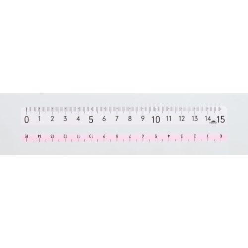 メモリの部分の色が変化する新感覚定規です。濃い色の上で長さを図りたい時に、大きい目盛側の下に色が出現することで同化して見づらかったメモリが見やすくなります。