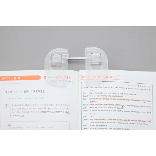 「はんぶんこ」にできるクリップです。厚みに差があっても左右のページをしっかり固定できます。他にメモスタンドやアクスタスタンドとしてもご使用いただけます。大きく開くからプリント整理にも最適で、クリア素材なので文字も隠さず読むことができます。