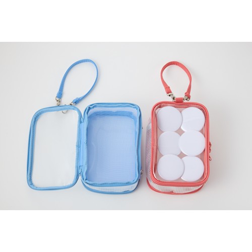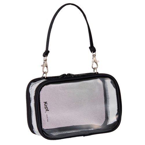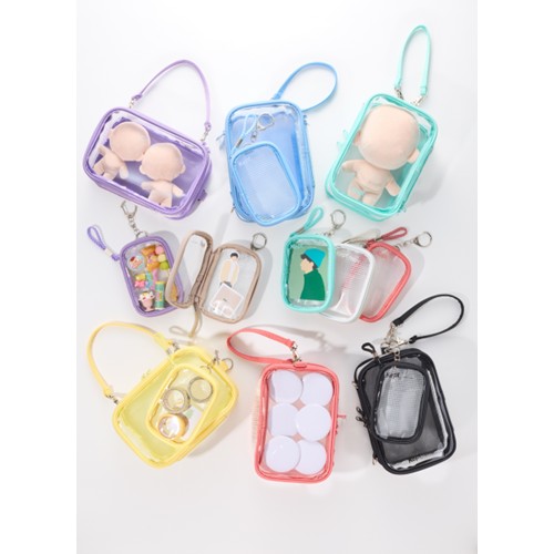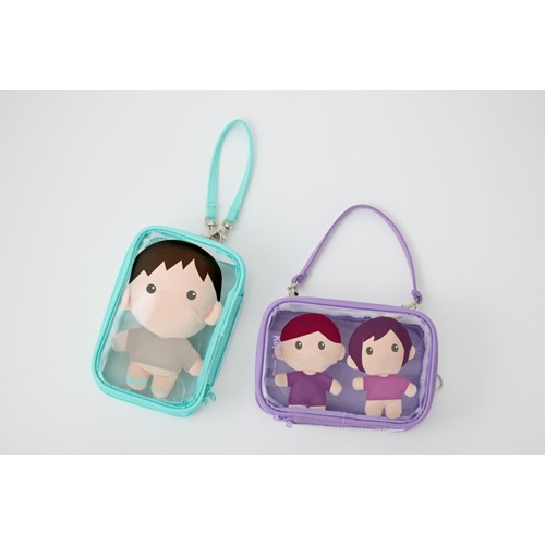 Keptのぬいぐるみポーチです。表面にはぬいぐるみが収納でき、裏面には缶バッチが付けられます。持ち手は縦横両用なのでぬいぐるみに合わせて調整できます。大きいぬいぐるみから小さいぬいぐるみまで収納できて、缶バッチも付けられるのでライブグッズの収納に最適です。鑑賞用ケースや持ち運び用ケースとして色々ご使用いただけます。