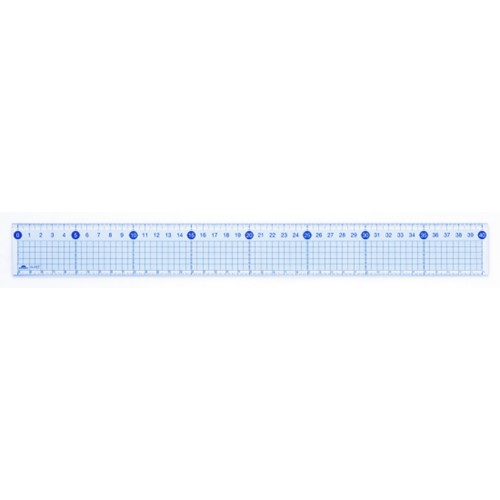 カッターでの作業時にも使えるすべらないカッティング定規です。定規の端にステンレス製の金棒をはめ込んでいるのでカッターでの作業時にも定規を傷つけることなくまっすぐカットできます。裏面にはスベリ止め特殊加工が施されていることでスライドのしやすさと滑りずらさという反対の機能を実現しました。定規で測る際には軽い力でスライドでき、カッターでカットする際に強く力をかけて抑えると動かなくなります。5cmごとに色塗りがされていることに加えて、目盛に矢印の記載があるので測る時に見やすくなっています。